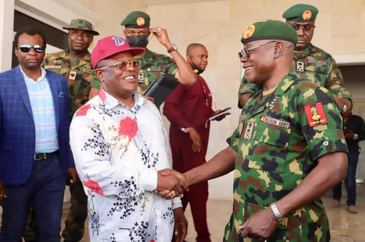 Ebonyi State Governor, Engineer David Nweze Umahi on Monday played host to the Chief of Army Staff, Lieutenant General Faruk Yahaya who was in his office to intimate him on the launch of the new operation Golden Dawn nationwide.