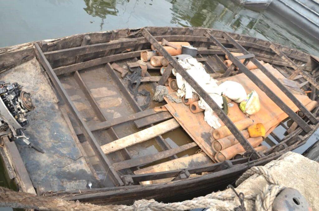 “About 10 metal plates, 14 angle iron and 20 gas cylinders were found carefully concealed in the wooden boat for the construction of illegal refining sites in the creeks,” he said.