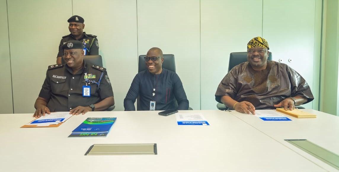 L-R Commissioner of Police in Rivers, CP Olugbenga Adepoju; Managing Director of Nigeria LNG Limited (NLNG), Adeleye Falade, and his deputy Olakunle Osobu, during a meeting in Port Harcourt on Wednesday