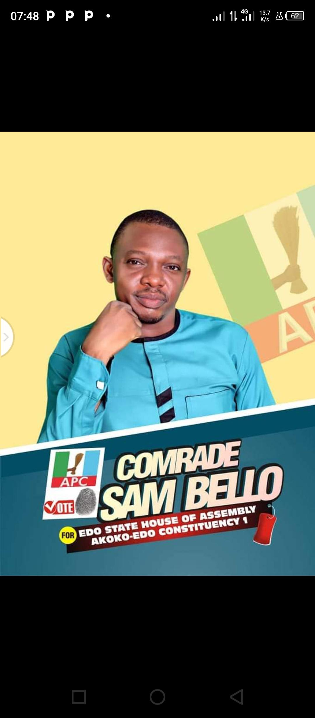 Abuja, Aug. 20, 2023 (NAN) A Chieftain of the All Progressives Congress (APC) in Edo state, Comrade Samuel Bello has called for calm, following the appointment of Hon. Abubakar Momoh as Minister of Youth.