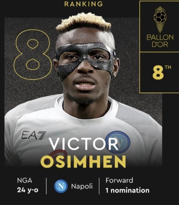 NAN also reports that Osimhen made history for Nigeria and Africa as he finished in an impressive eight position in the 2023 Men’s Ballon d’Or rankings on Monday.