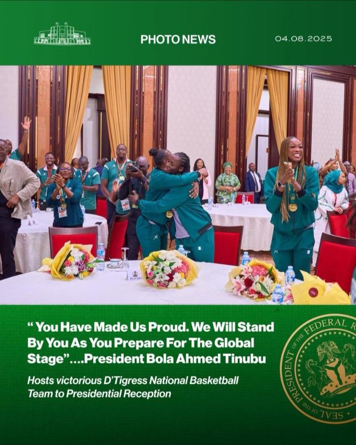 Abuja, Aug. 4, 2025 – President Bola Ahmed Tinubu has pledged $100,000 to each of the 12 D’Tigress players and $50,000 to each member of the technical crew following their triumphant victory over Mali to secure a historic fifth consecutive title at the 2025 FIBA Women’s AfroBasket Championship in Abidjan, Côte d’Ivoire.