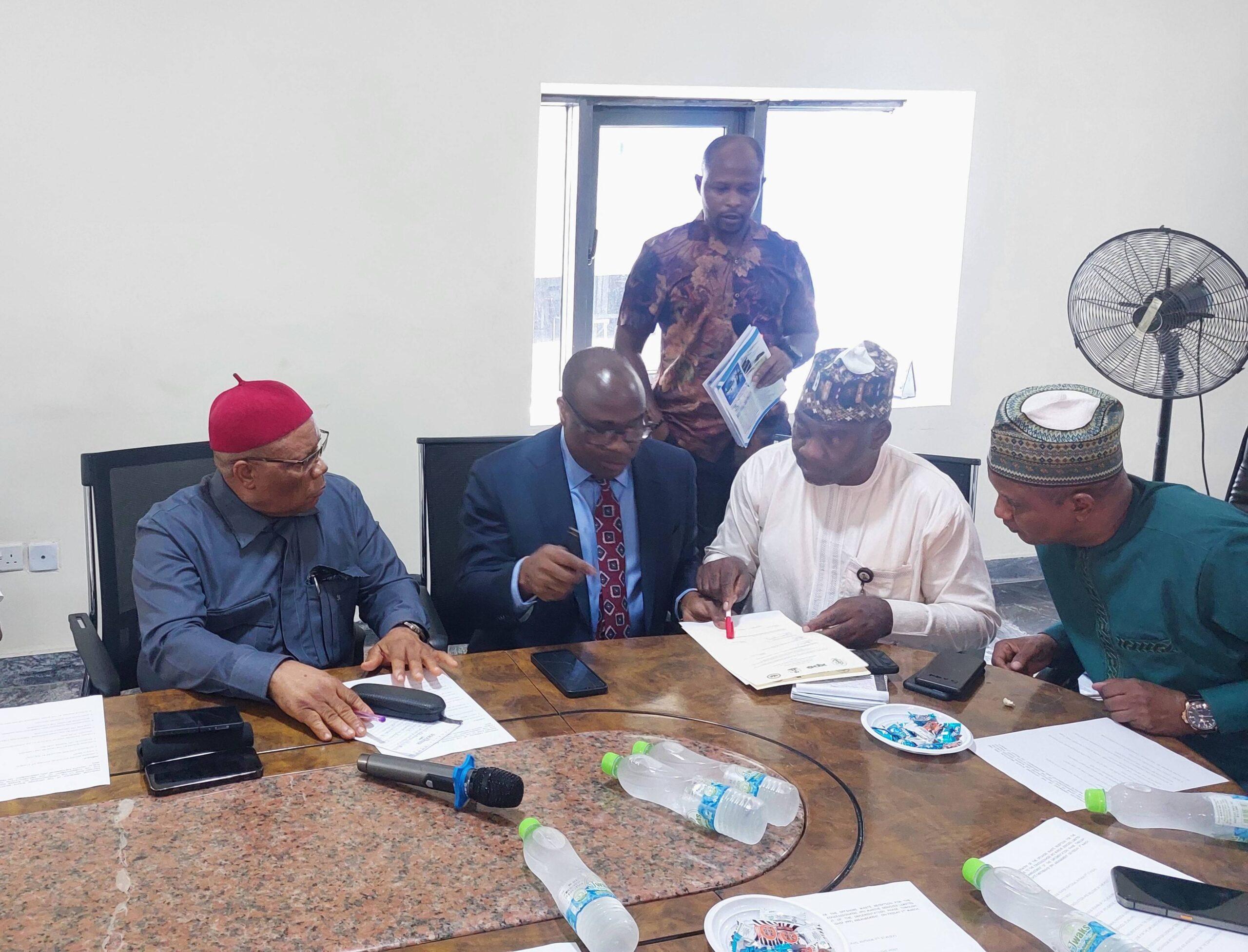 From L-R: Head Public-Private Partnership (PPP), Ministry of Marine and Blue Economy, Uche Alaeto; Managing Director of XPO Marine Services Limited, Wellington Agharese; Head of PPP, NIMASA, Kabiru Diso, and Zonal Coordinator of NIMASA, Eastern Zone, Yusuf Barde signing the take-off of Offshore Waste Reception Facility for Nigeria’s Eastern waters in Port Harcourt