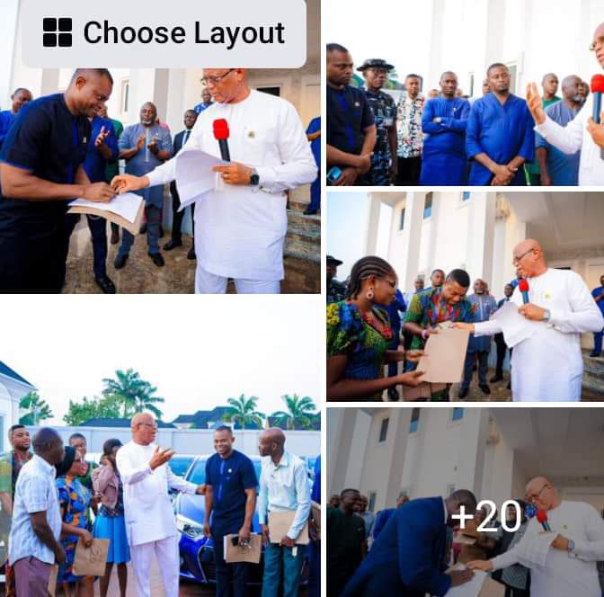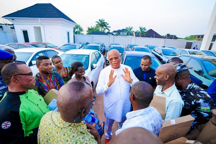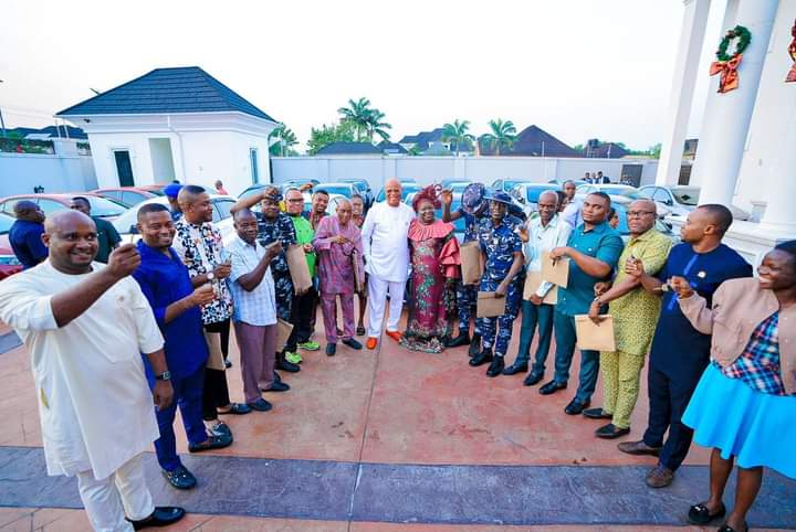 Governor of Akwa Ibom State, Pastor Umo Eno presented cars to over 20 personal aides for Christmas.