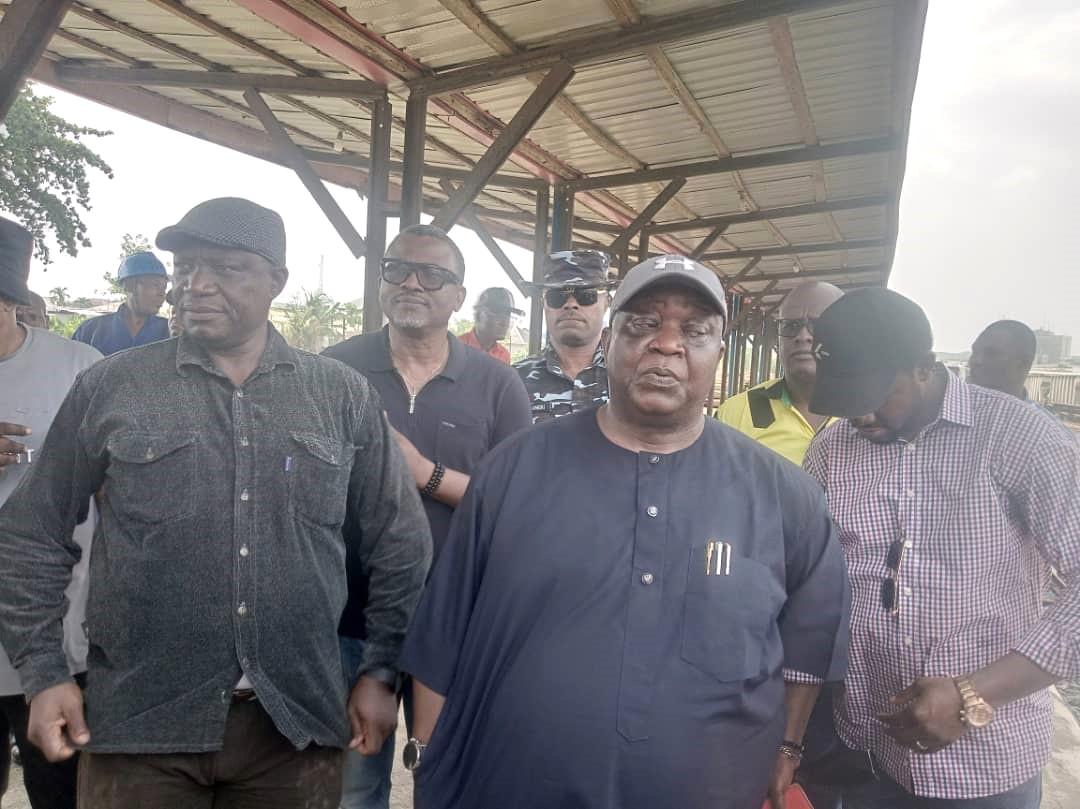 Managing Director, Nigeria Railway Corporation (NRC), Fidet Okhiria (middle) during his inspection of Port Harcourt-Aba railroad project ready for use by end of March