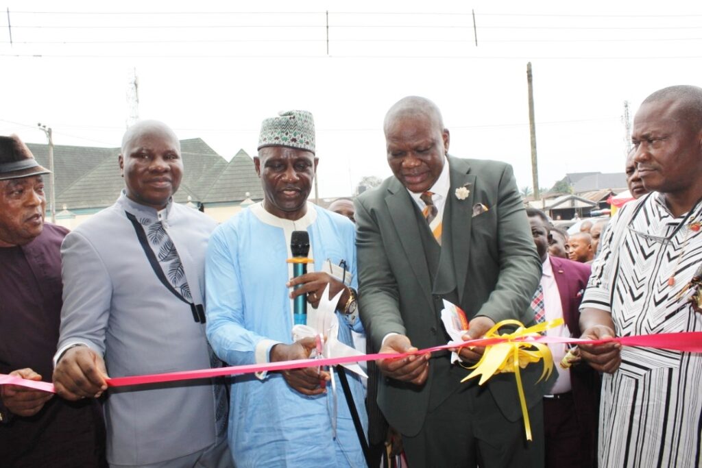 President of The Promise, Oluwatoyin Alabi (2nd left); President of Port Harcourt Chamber of Commerce Industry Mines and Agriculture (PHACCIMA), Mike Elechi and the Chairman of Oyigbo Local Government Council, Okechukwu Opara (5th from left) during inauguration of the outlet in Oyigbo, Rivers