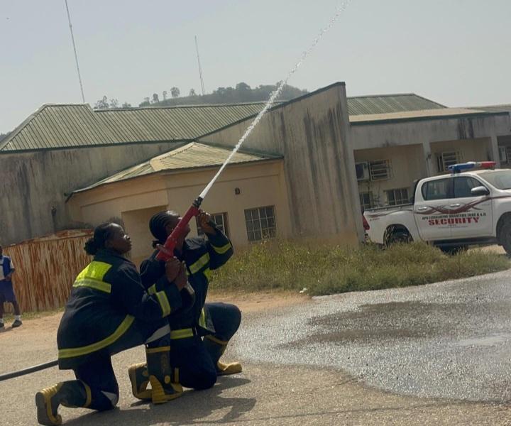 Officials conducted demonstrations and taught pupils fire-fighting basics.