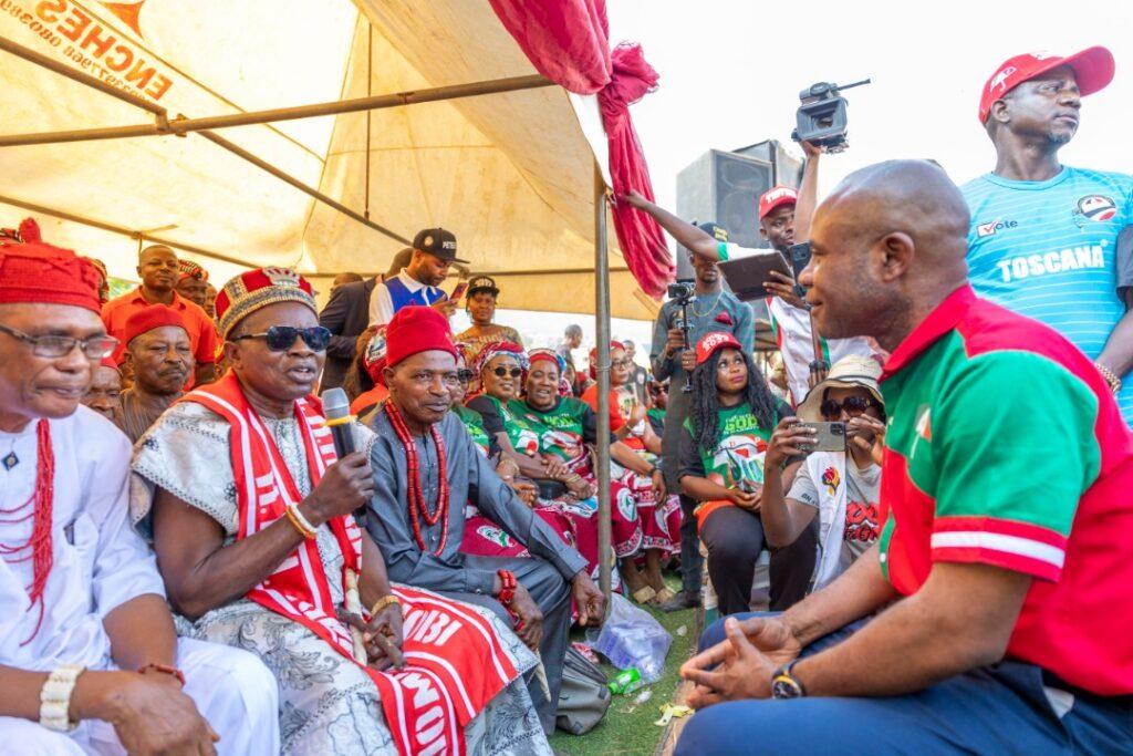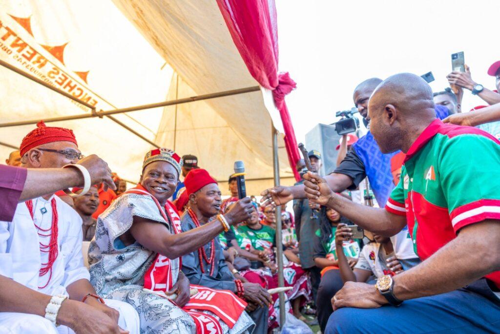 The climax of the town-hall meetings was the presentation of the traditional staff, ófó, to the governorship hopeful by the Awgu traditional rulers council, who re-echoed their support for his candidacy.