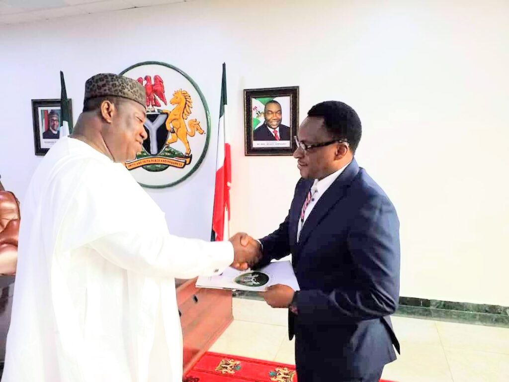 Hon. Mike Ogbuekwe exchanging pleasantries