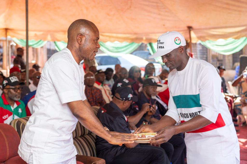 In their welcome remarks, the administrators of the development centres, Hon. Ezike Fortune, Hon. Chinedu Onyerere, council chairmen, Hon. Emeka Onueze, and member representing Enugu North constituency at the House of Assembly, Hon. Ibenaku Onoh, said they were glad God had answered Enugu’s prayer through the candidature of Mbah whom they described as the most prepared and most qualified to lead the state in the forthcoming election.