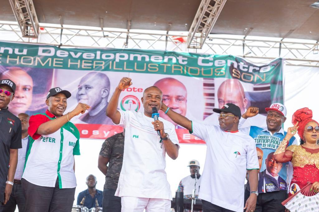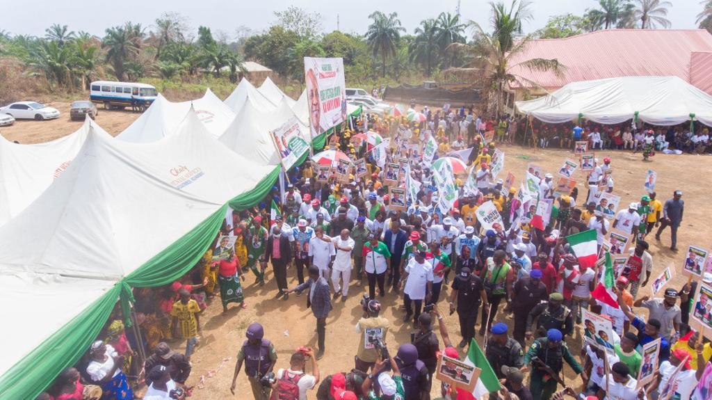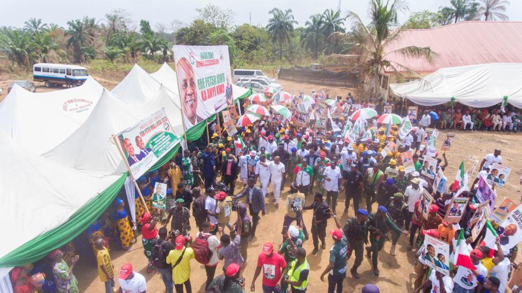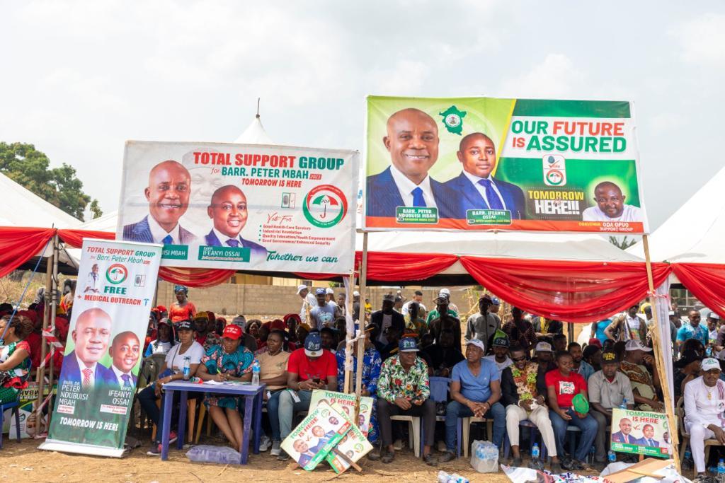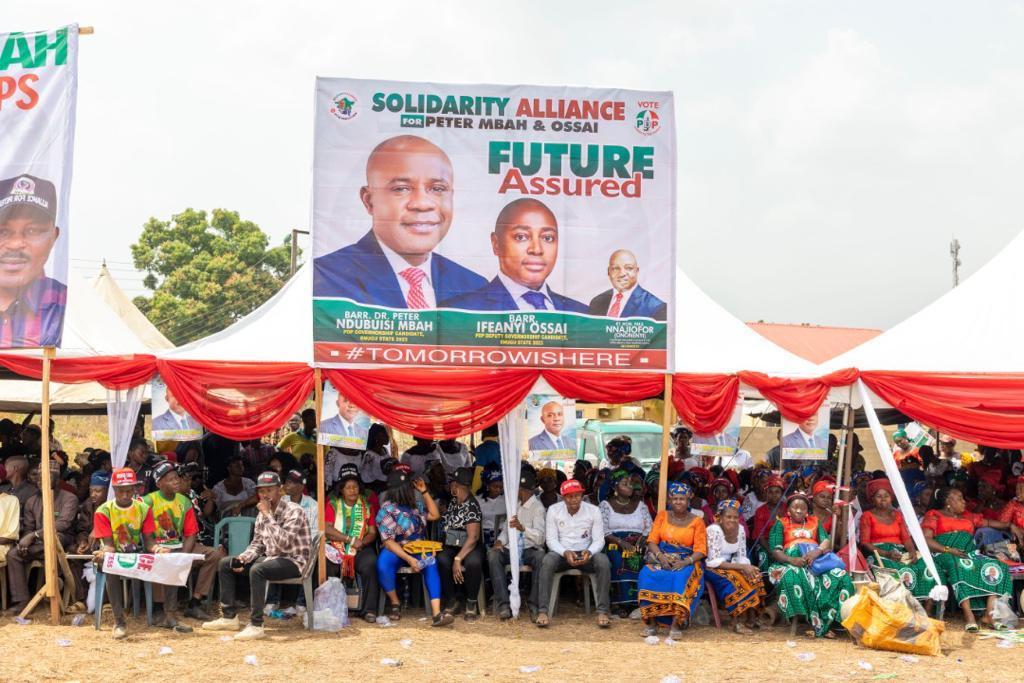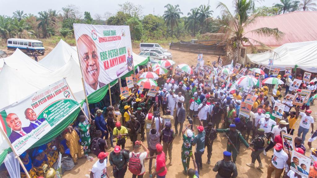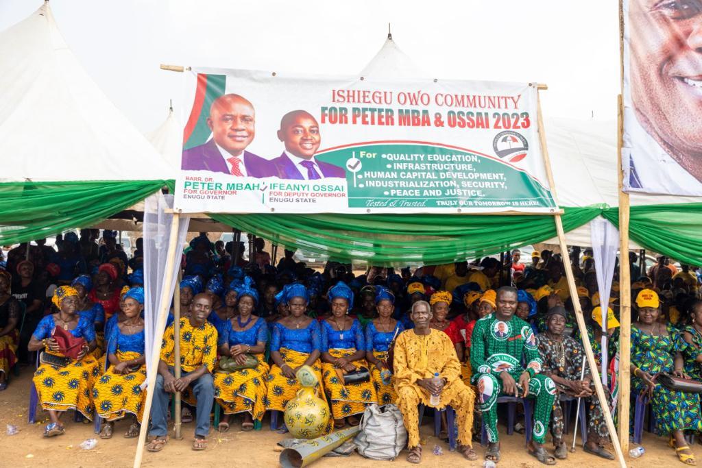 There was almost stampede on Thursday at Owo and Amagunze communities, headquarters of Amankanu and Nkanu East Central Development Centres in Nkanu East Local Government Area of Enugu State as mammoth crowds, numbering in thousands, took over various roads and streets to welcome the governorship candidate of the Peoples Democratic Party, PDP, Dr. Peter Mbah, to the town-hall meetings initiated by the candidate to interface with the people living in the state.