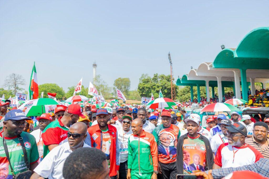 While addressing the groups which finally converged on the popular Michael Okpara Square, the convener and Director, PDP Support Groups for Peter Mbah in the party’s State Campaign Council, Rt. Hon. USA Igwesi, said the mammoth crowds that took over the capital to recommit their earlier support for Barr. Mbah was a reaffirmation that PDP would win all the polling units in the state, including the presumed support base of the opposition parties.