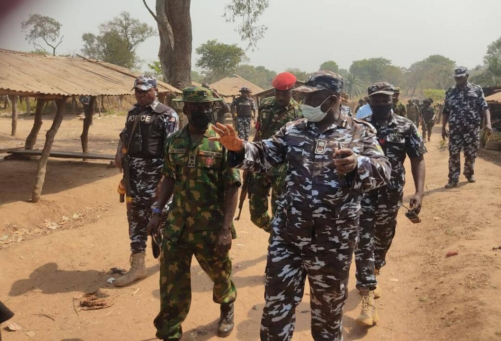 The Commissioner of Police, Enugu State Command, CP Abubakar Lawal, fdc, has today, 07/01/2022, alongside Commander of 82 Division Garrison Command of the Nigerian Army Enugu, Brig. Gen. Chris Ataki, and the State Director of Department of State Services (DSS), Enugu State, Mr. Habu Daluwa; carried out on-the-spot assessment tour of Ogbete-Mgbuji village in Eha-Amufu community of Isi-Uzo Local Government Area, following report of attacks and other criminal incidents in the community. The tour enabled the Commissioner and the Security Chiefs to jointly assess, strategize and put in place immediate measures to avert further occurrence of the incidence and other heinous criminal acts, allegedly perpetrated by miscreants suspected to have intruded the area from border communities in Benue State.