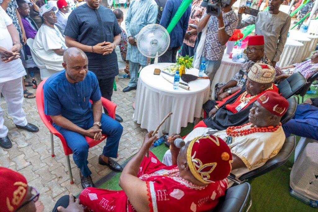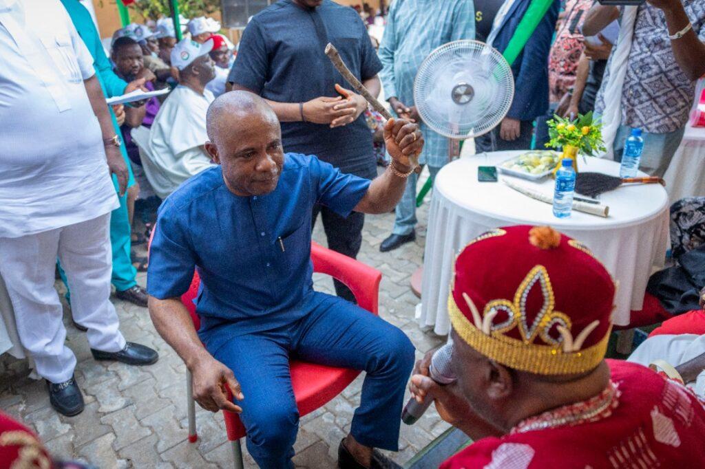 The PDP gubernatorial frontrunner was, in addition, presented with the ófó staff, a symbol of acceptance and authority, by all the traditional rulers in the various communities.
