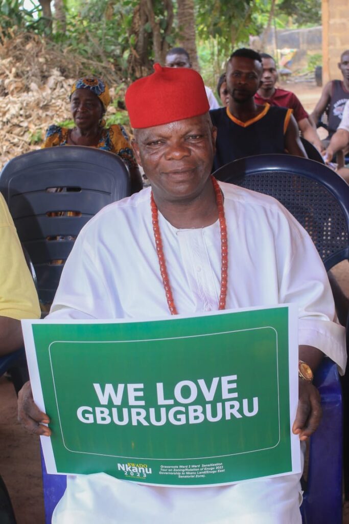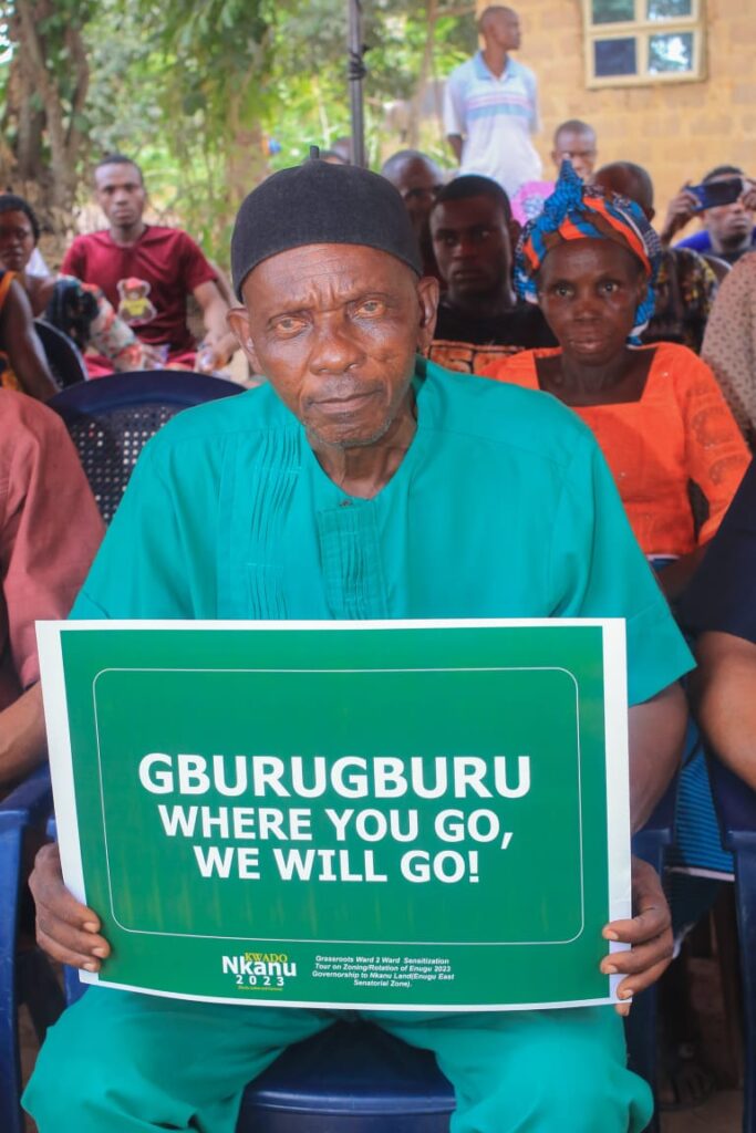The Team was welcomed by elated villagers, both old and young alike promised to vote en masse for a candidate of Enugu East Senatorial Zone’s extraction as they were all ready with their voter’s cards. Our correspondent, Okwy Emmanuel observed the insistent chant renting the air by the cheering crowds that it was the turn of the zone to produce the next governor of the state. Some of the jubilant electorate could be heard chanting; “It Is Our Turn, Let Other Zones Support Us. Enugu East Senatorial Zone has credible, competent and qualified candidates for the position of Governor come 2023 and we will support who Governor Ugwuanyi supports from Nkanuland because he has done well and we love him.
