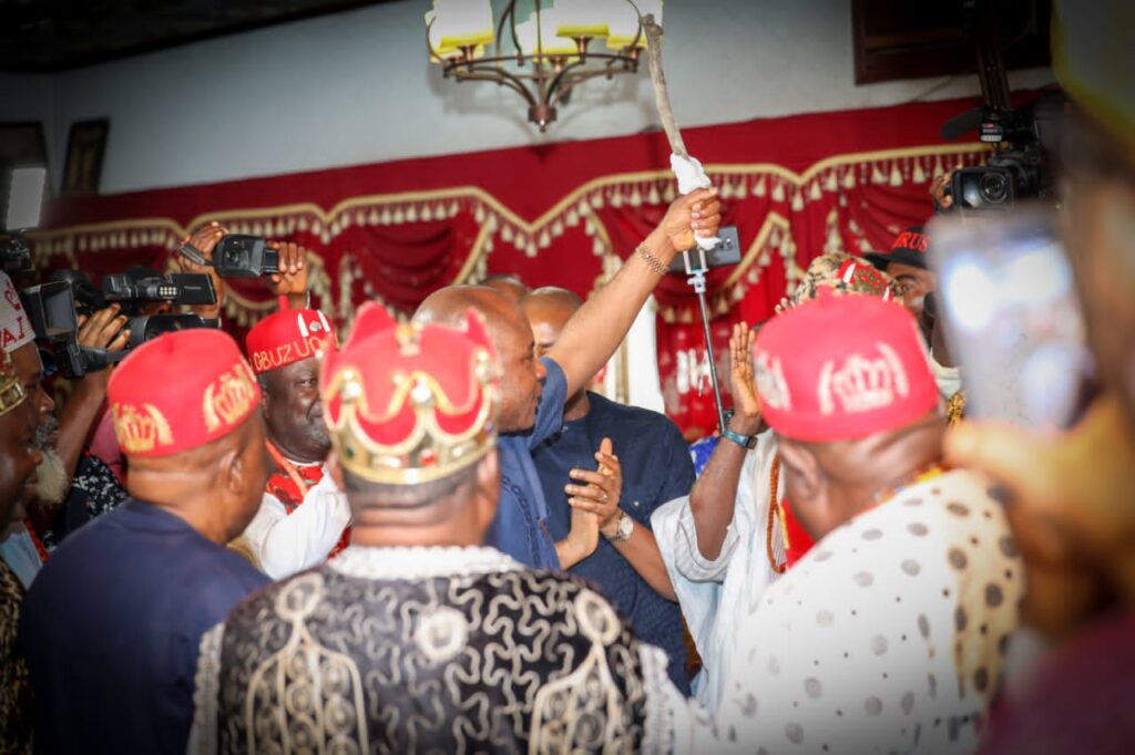 Speaking on behalf of the traditional rulers during the presentation, Igwe Nnaji said he was handling the ófó to Mbah in the name of Nkanuland and its people, praying for his remarkable victory in the elections.
