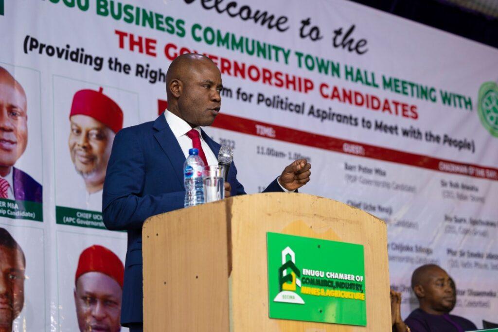 The business captain who disclosed this during an interactive session with the Enugu business community tagged “Enugu Business Community Town Hall Meeting with the Governorship Candidates”. Dr. Mbah said that people who don’t know what business principles entail should not come and talk about business before the assembly of business men and women, stressing that his background in both the public and private sectors has prepared him for the task ahead.