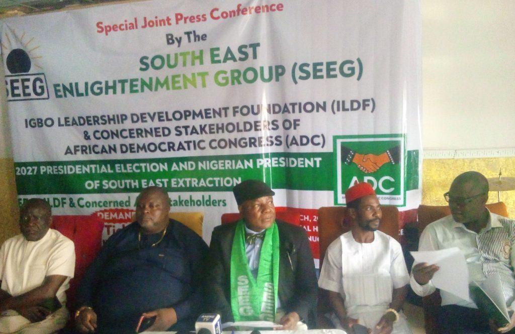 Speaking to newsmen, the National President, South East Enlightenment Group (SEEG), Dr Godwin Udibe, further called on the ADC and the other political parties to field candidates of the South East extraction as their sole candidates in 2027 presidential election.