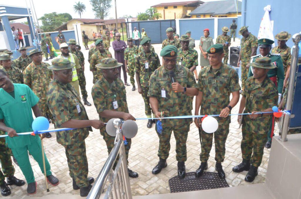 During the visit, Dada on behalf of the Chief of Army Staff (COAS), Lt.-Gen. Taoreed Lagbaja, inaugurated the newly remodeled 13 Brigade Medical Center fitted with state-of-the-art medical equipment and 12 blocks of flats for corporal-and-below quarters.