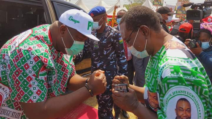 Speaking during a well attended rally of the Peoples Democratic Party (PDP), held at Oji River Local Government Area, ahead of the February 23, 2022, Local Government Elections in Enugu State, the former federal lawmaker and revered Chieftain of the PDP described Gov. Ugwuanyi as “our leader, a God-sent leader, our friend, the friend of Ndi Enugu State, the friend of Nigeria, and the friend of humanity”.