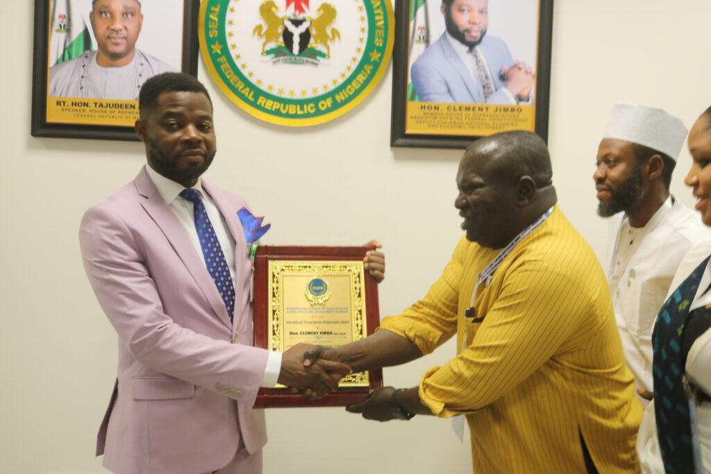 The All Progressives Congress Party Member representing ,Abak/ Etim Ekpo/Ika Federal Constituency of Akwa Ibom state ,Hon Clement Jimbo has being bagged with an International Humanitarian Ambassadors Award by the International Synergy of Advocates For Global Peace And Development Initiative .