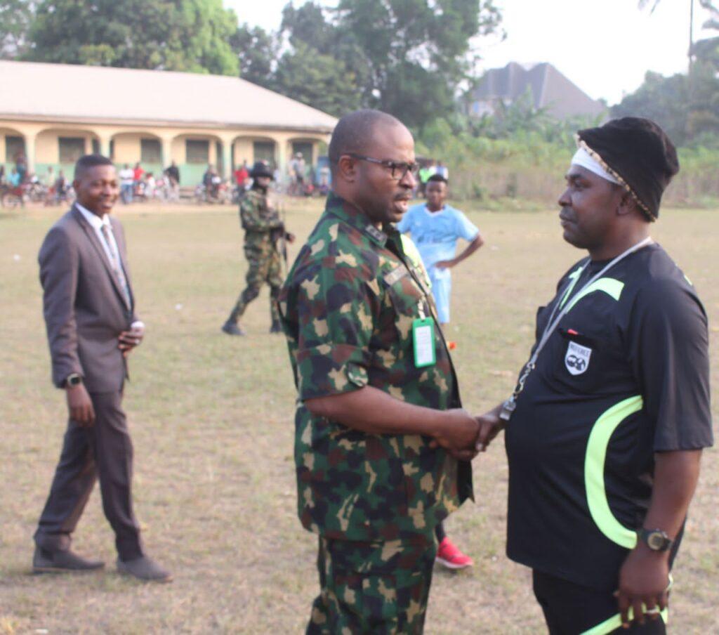“The GOC while on operational visit to Forward Operating Base Orsumoghu in Ihiala Local Government Area of Anambra State had a brief stopover at the Azia Community Football Field where he played a football match with the youths of the community.